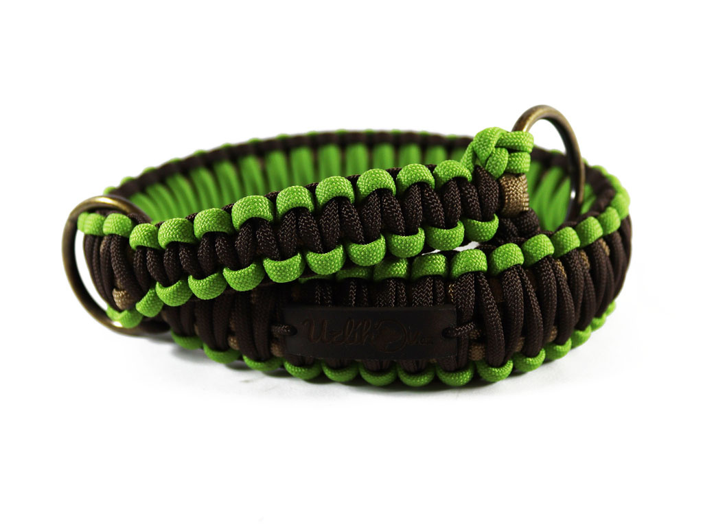 Stahovací obojek paracord KLASIK CHOCO zelený šířka 3 nebo 4 cm | staromosazné kroužky