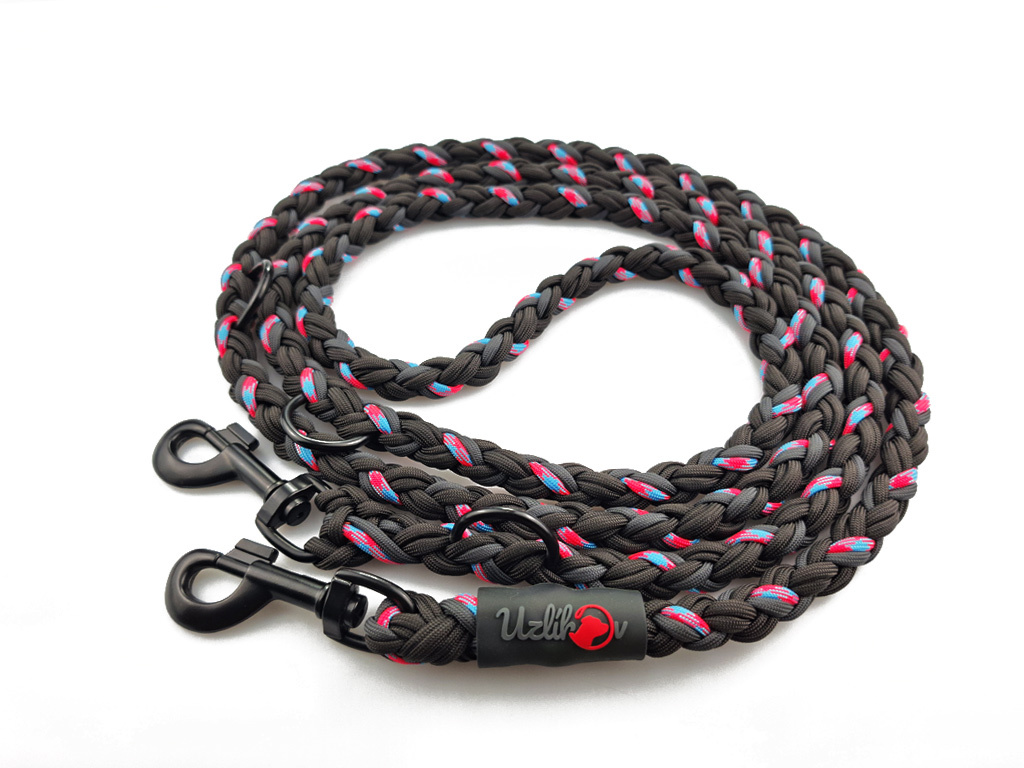 Vodítko paracord 220 cm přepínací KLASIK NEON BLACK modrorůžové pro psy do cca 40 kg | klasické černé karabiny