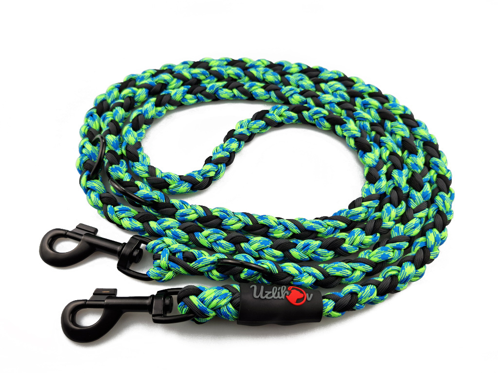 Vodítko paracord 220 cm přepínací KLASIK NEON COLOR modrozelené pro psy do cca 40 kg | klasické černé karabiny
