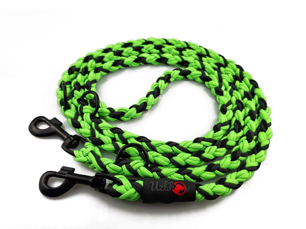 Vodítko paracord 220 cm přepínací KLASIK NEON COLOR zelené pro psy do cca 40 kg | klasické černé karabiny