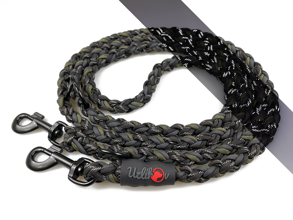 Vodítko paracord 220 cm přepínací KLASIK BLACK khaki pro psy do cca 40 kg | klasické černé karabiny