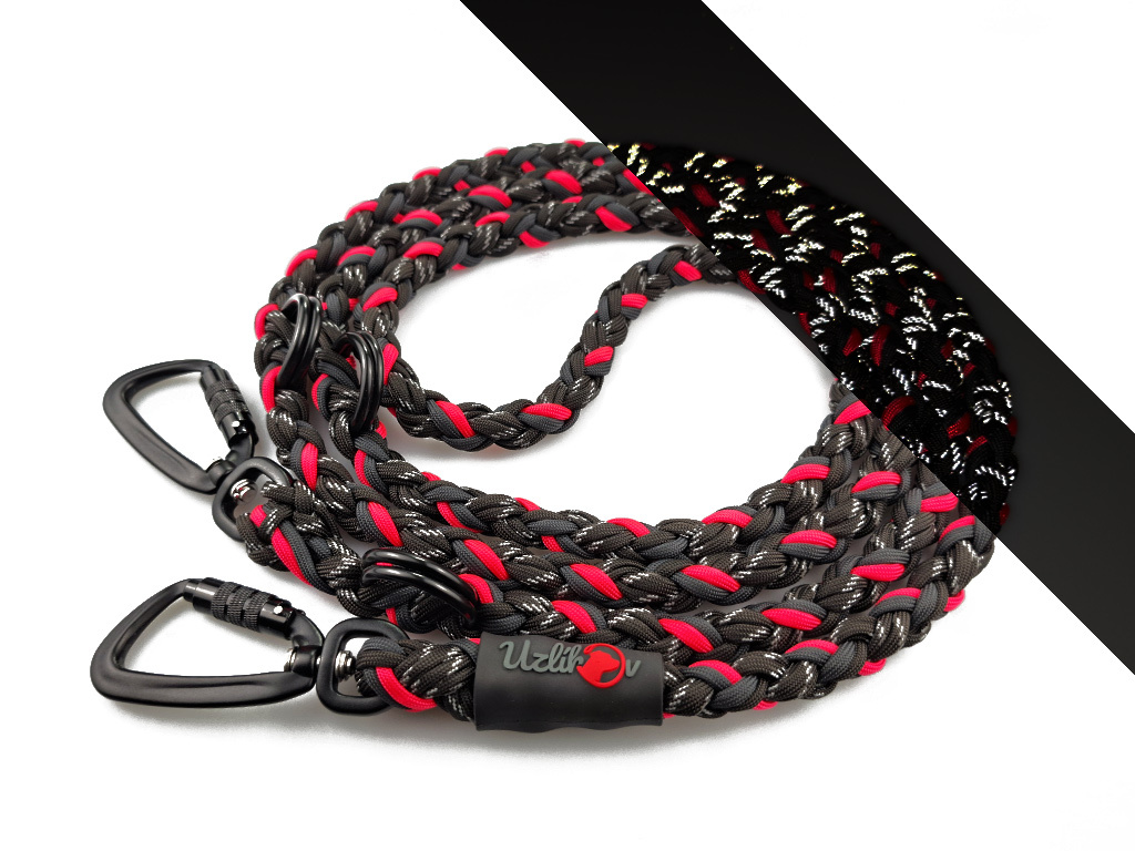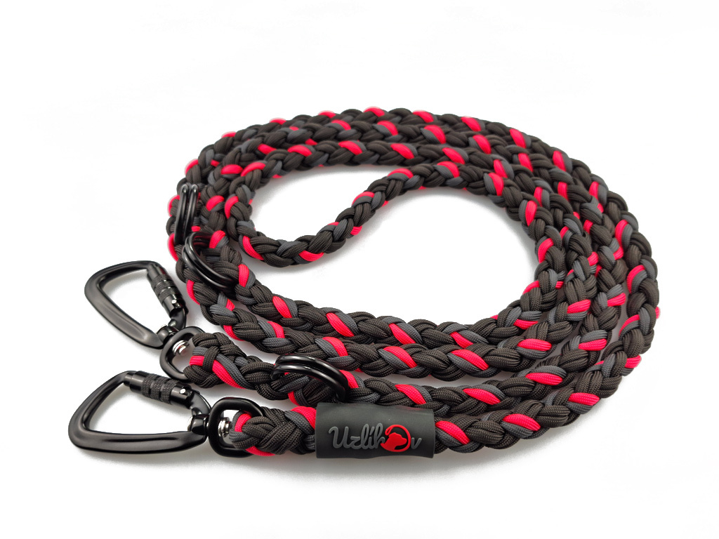Vodítko paracord 220 cm přepínací TWIST NEON BLACK růžové pro psy do cca 50 kg | duralové twist-lock černé karabiny